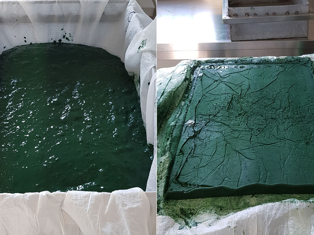 La pressatura a freddo è il procedimento mediante il quale la microalga raccolta viene schiacciata.