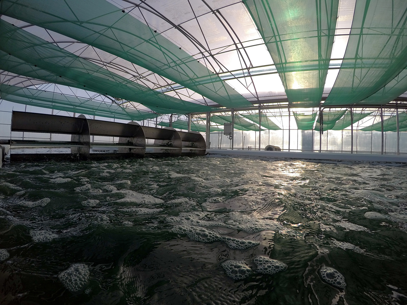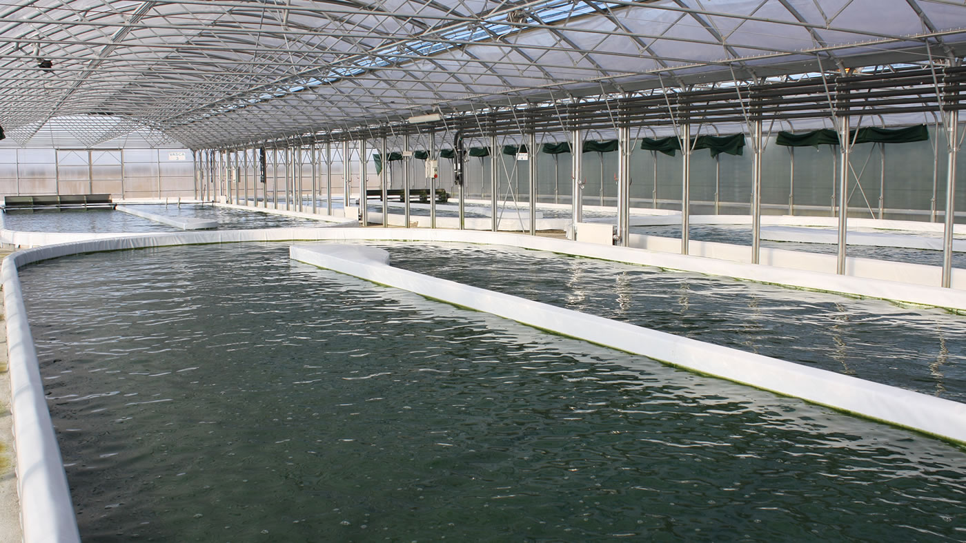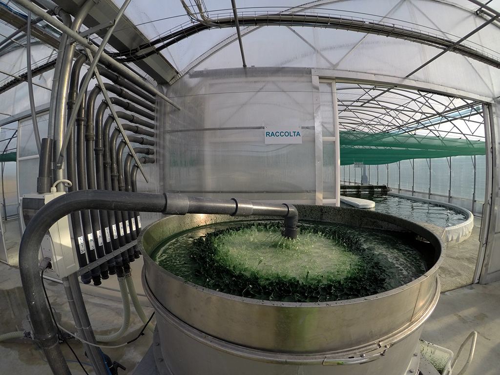 Ravviviamo costantemente l’acqua nelle vasche per stimolare la crescita delle micro alghe e la fotosintesi clorofilliana. Infatti a fotosintesi è necessaria alla corretta crescita dell’alga.
